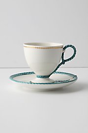 Mushroom plate, Cardiff cup and saucer, and Dew Drop spoons by Anthropologie