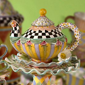 Butter dish, sugar bowl and two tier sweet stand by MacKenzie- Childs