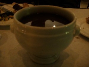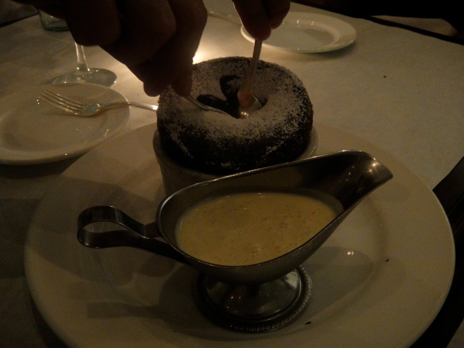We didn’t feel right about walking away from dinner without ordering dessert so we decided on the chocolate Soufflé . One thing you should probably know about me is that I’m not a chocolate lover. (Gasp!) I know, I’m not a real woman. The only reason I enjoyed this dessert is because I drowned the chocolate-ness in the crème anglaise.
