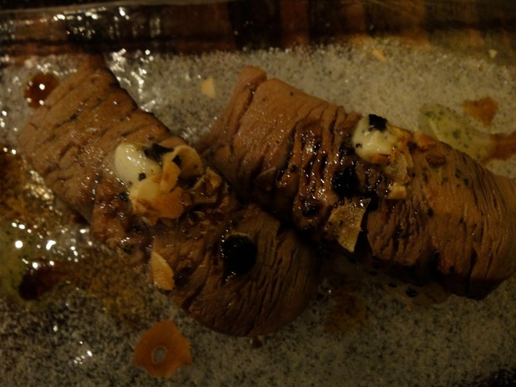 Seared bluefin tuna garnished with a ponzu sauce, crispy garlic chips and topped with truffle butter