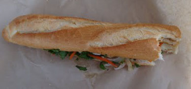 Definition of Banh Mi: Vietnamese Baguette Sandwiches, most commonly filled with thinly sliced pickled carrots, daikon, cucumbers, cilantro, chili peppers, mayonnaise, and various meat or tofu.