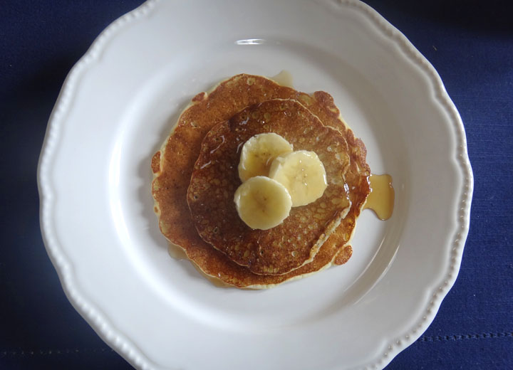 Mix ingredients together until smooth. Batter should be thin with no lumps. Pre- heat skillet. Temperature should be high due to the thinness of these pancakes. I find that putting the burner to a medium temperature works best. There is no need to grease the skillet as you have already added butter into the batter. Slowly pour batter into skillet and let cook until lightly browned on both sides. Top with maple syrup and fruit.